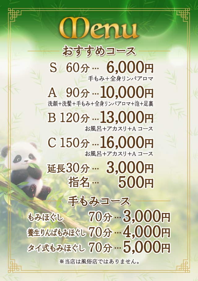当店は健全なリラクゼーションサロンです。風俗行為は一切ございません。